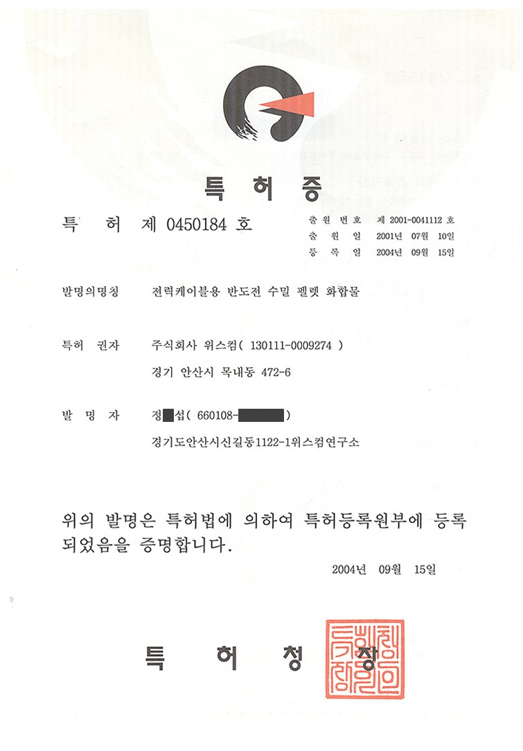 电力线缆 半屏蔽 水密 树脂化合物 专利证书 페이지 정보 최고관리자 메일보내기 아이디로 검색 12,617 2016.03.07 17:14 × 연도 Note! 접수마감일 이전글다음글 목록 본문